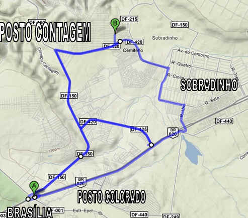 Para quem não entendeu o mapa, é só pegar a estrada Brasília para Sobradinho e virar à esquerda no posto Colorado no sentido da Fercal, no posto de gasolina Contagem virar à direita subindo, procurar a madeireira Campista e achar o Setor de Mansões Sobradinho.