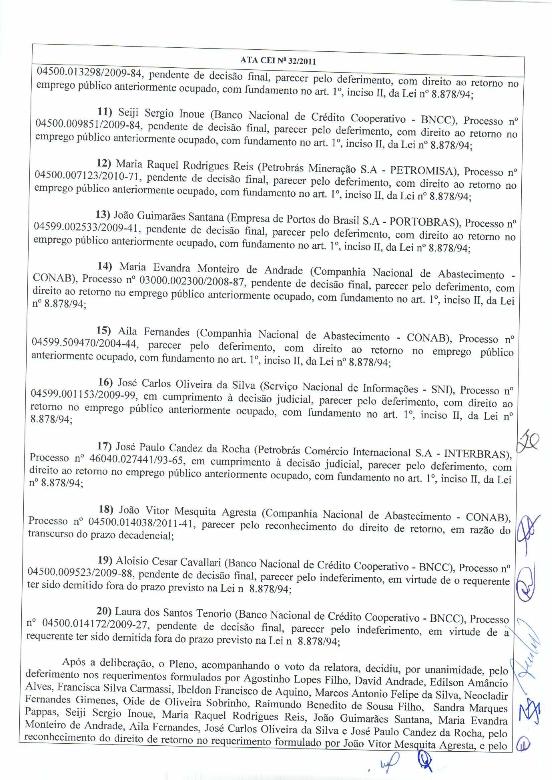 09/11/2011 a CEI realizou mais uma reunião no qual analisou mais 13 processo do BNCC além de outros, segue abaixo: